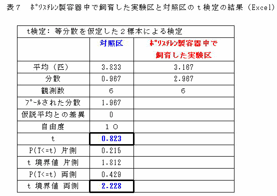 つぎに、ポリスチレン製容器中で飼育した実験区について同様の検定をおこなってみた。