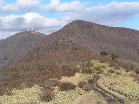 稜線伝いに歩いて、ふと振り返ると荒山、鈴ケ岳が