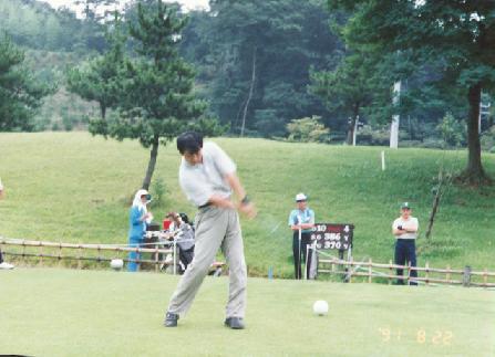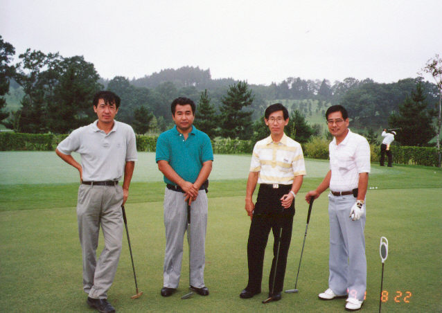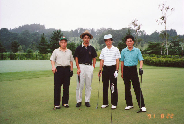 スタート前のパター練習場で記念撮影 熾烈なトップ争いの前・・憩いのひととき