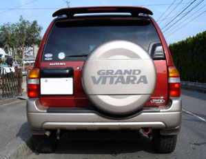 LA−TL52W(カシスレッドパール(Z5K)/クールベージュメタリック(ZA4)ツートンに全塗装) サイドアンダーミラー撤去,フェンダーにあるウィンカー撤去。バンパーサイドに新設 限定車用リアスポイラーに交換 ルーフレール取付け(H15年式にルーフレールの設定なし) GRANDVITARAエンブレム スペアタイヤカバー(ZA4に塗装。GRANDVITARAロゴ(カッティング貼付け)) US純正リヤコンビネーションランプ US純正タンクガード US純正ラジオアンテナ ドアバイザー ヒーテッドドアミラー ウォッシャノズル(社外品に交換) ナンバープレートリム APIO ROADWINショックアブソーバー APIO コイルスペーサ(TD01W用を加工流用) スズキ純正 ヘリカルLSD スズキ純正Sエディション専用ホイール (その他純正2種,テッチン1種あり) 木目調インパネ&ドアSW(グランドエスクード純正部品を流用) オーバーヘッドコンソール(グランドエスクード純正部品を流用) トノカバー,ラゲッジジュウタン,バックドアポケット,イグニッションキー照明,メッキドアノブ モンスターパワーエアフィルター,サイクロン,スプリットファイアプラグ,ホットイナズマ PIAA HID(4600K) ウィンカーポジション化キット ADDZEST MAX735HD(HDDナビ),バックカメラ |